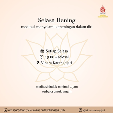 On Tuesday evening, May 6th, 2025, I was invited to lead the weekly Selasa Hening session at Vihara Karangdjati, Yogyakarta. It’s a gentle interfaith gathering where participants from diverse traditions sit together in silent samatha meditation for a full hour—no chanting, no instructions, just breathing and awareness.